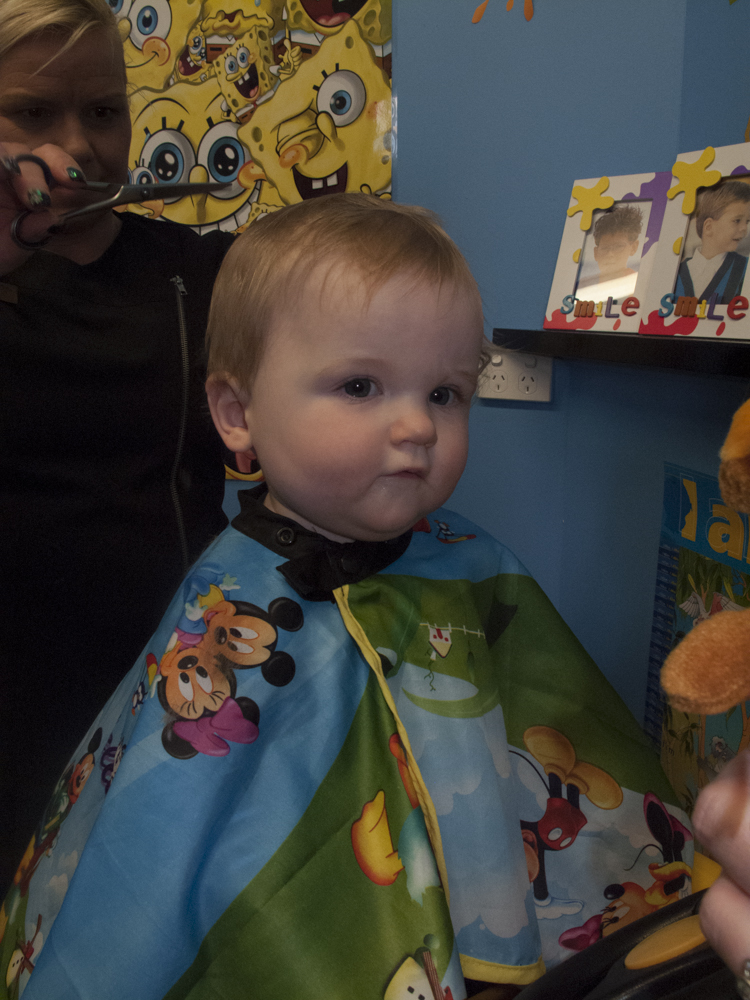 Thought I would share some of Owen's firsts with you, his first hair cut and his first birthday. His first hair was on the 22nd of September and he went really well. He sat relatively still, there was no crying and more importantly no mishaps with the scissors. He has since had a further hair cut and he was the total opposite! The hair dresser who cut his hair the first time kept calling him a dude and in her Irish accent it sounded rather cool. He even got some baby product in his hair!